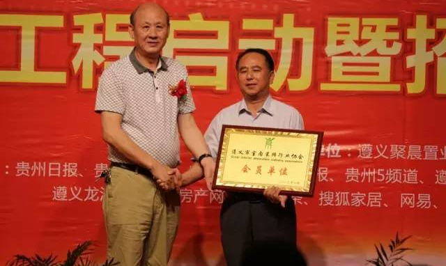 (遵義市室內(nèi)裝飾協(xié)會會長傅會相先生代表協(xié)會授予九鼎國際建材家居城 “遵義市室內(nèi)裝飾協(xié)會會員單位”牌匾)